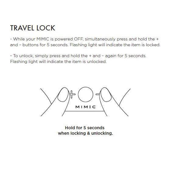 The design incorporates a couple of other smart features. A LED-light base simplifies the use of the product in the dark and it also acts as a charging indicator. Clandestine Mimic's functioning is silent for a discreet experience wherever you choose. A travel lock that gives you better security when you take the toy alongside during an adventure.