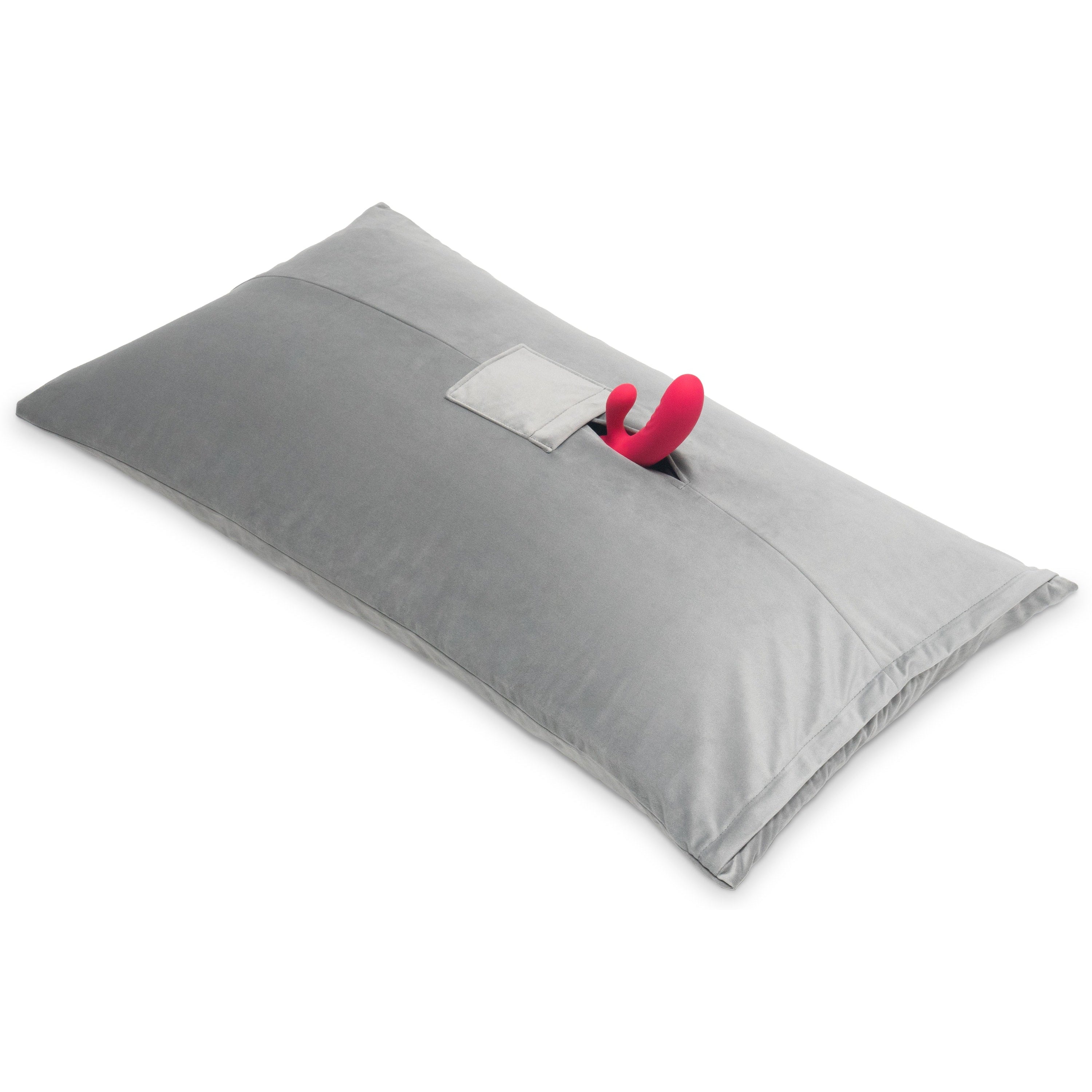 - Pillow-shaped sex toy mount with two secure toy pockets