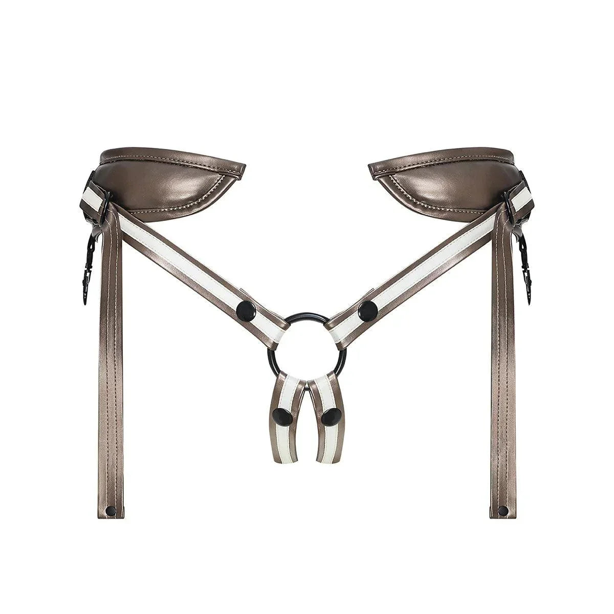O-ring metal hardware in the front makes the harness compatible with a wide range of dildos. As the dildo is positioned directly against your skin, you'll have perfect control over your experience and your partner's pleasure.